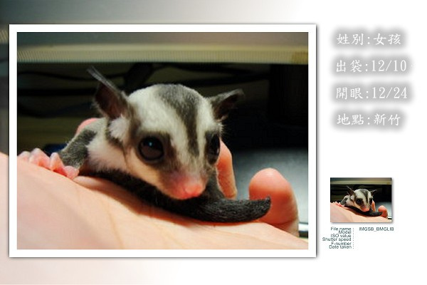 有12/10號出袋的,母幼蜜一隻 ( 12/24號開眼了 )